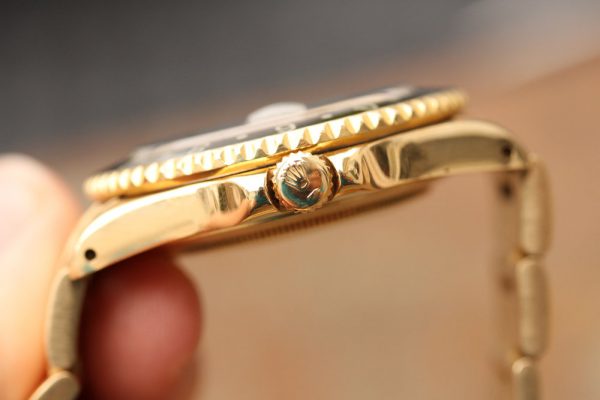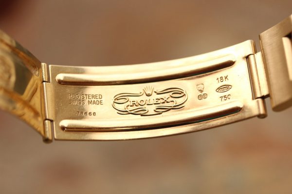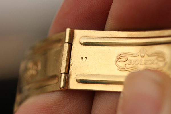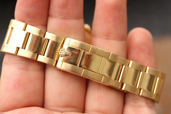 The bracelet is original and seldom seen Rolex 78668 solid link with 12 links total, 103 solid ends, and in very tight condition for its age.