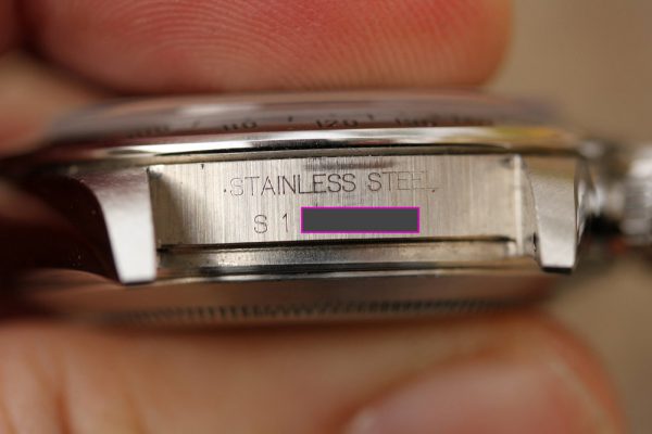 Very sharp and damage free condition case with thick and sharp lugs. Serial and reference numbers are fully intact and clearly visible.