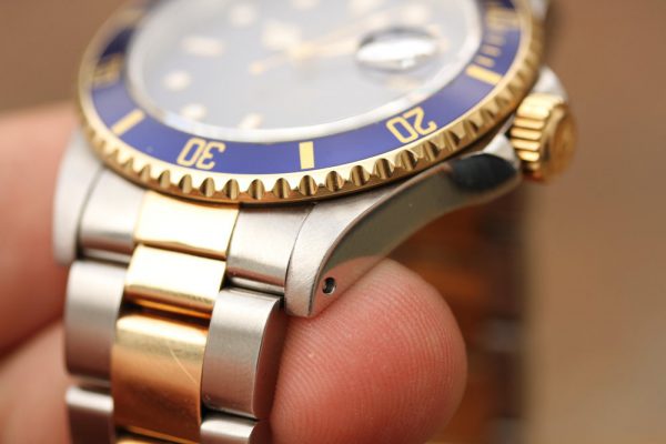 Excellent used condition with thick and even lugs. Serial and reference numbers are fully intact and clearly visible.