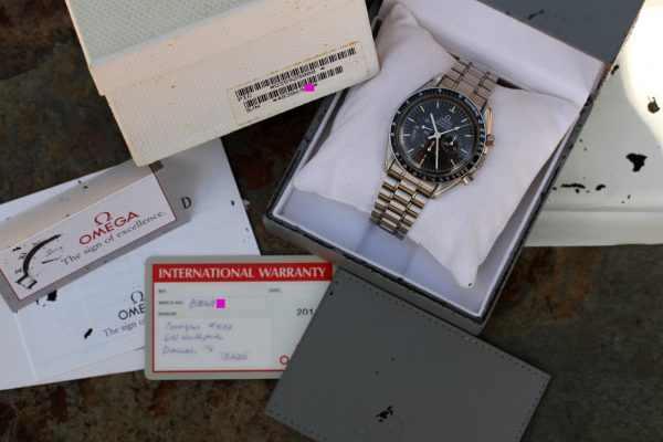 Watch comes with its original box and papers. Outer Omega box contains sticker with reference and matching serial number. Inner box is peeling as usual. Warranty card is filled with AD info and serial number (saleperson couldn’t see the first number “4” under the lug as its covered by the end-link).