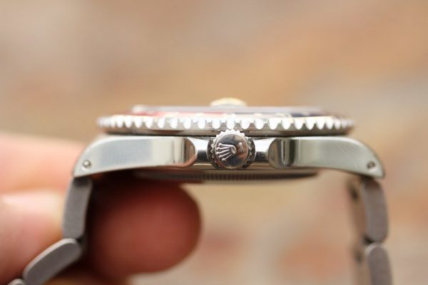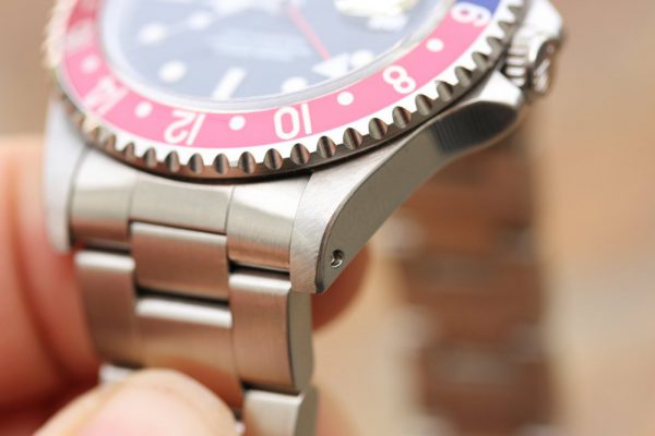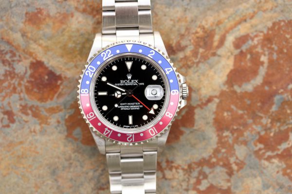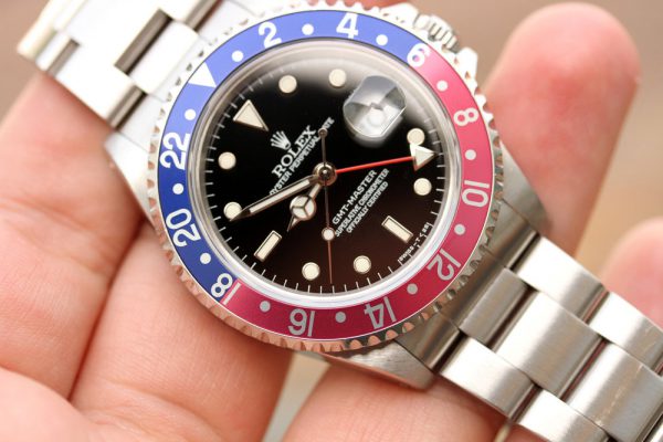 Up for grabs is a Rolex GMT-Master in steel