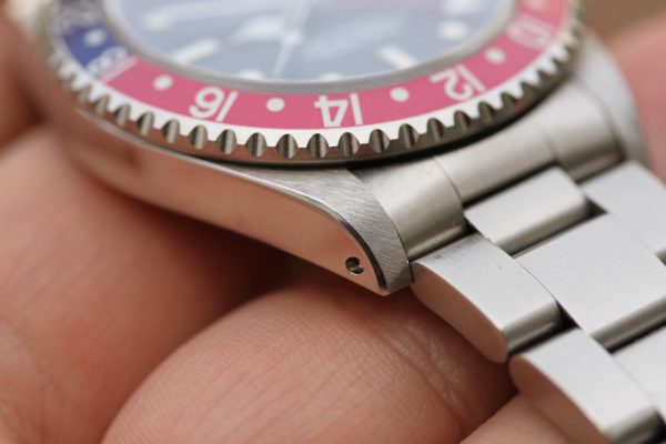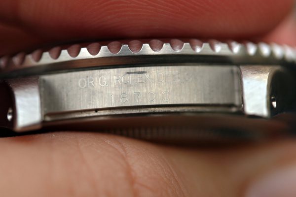 Superb vintage condition with unpolished case. Factory brushed finish is clearly seen, factory bevels on lugs are clearly visible. No corrosion or pitting. The serial and reference numbers are fully intact and clearly visible.