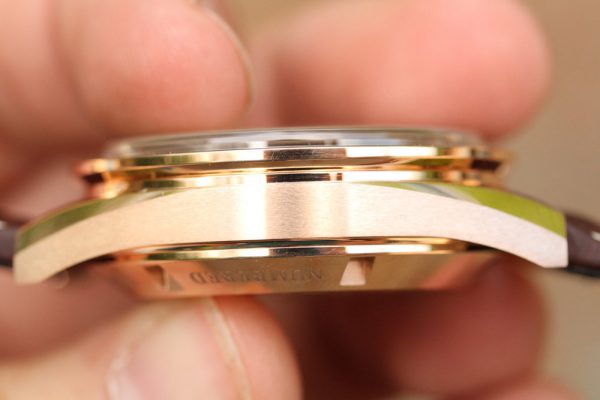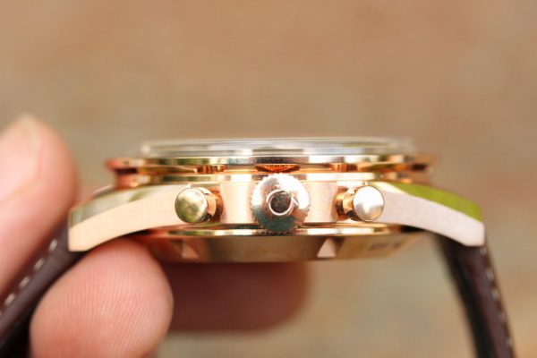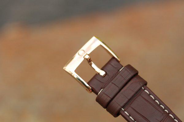 The strap is original, nearly unworn condition with original sedna gold buckle.
