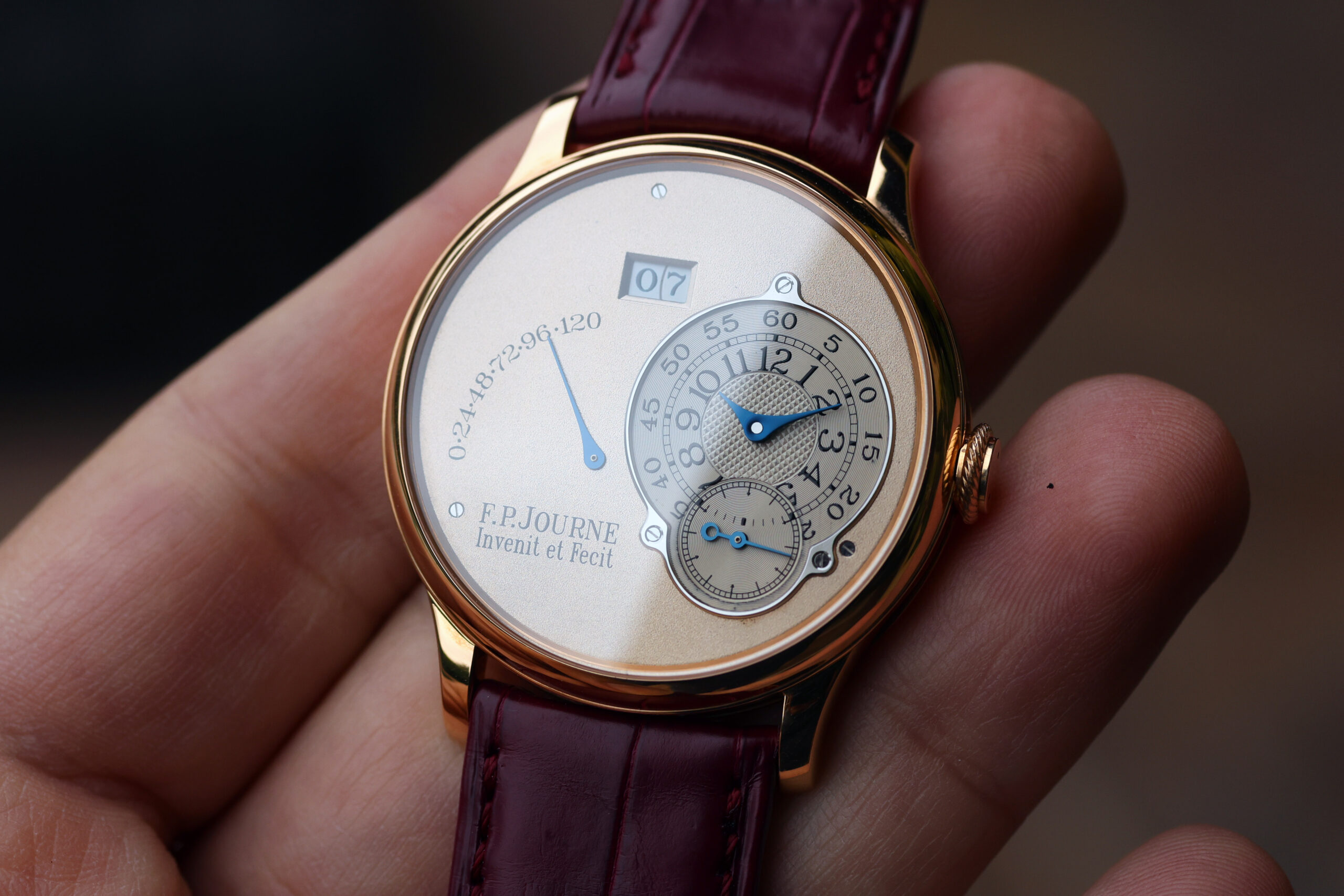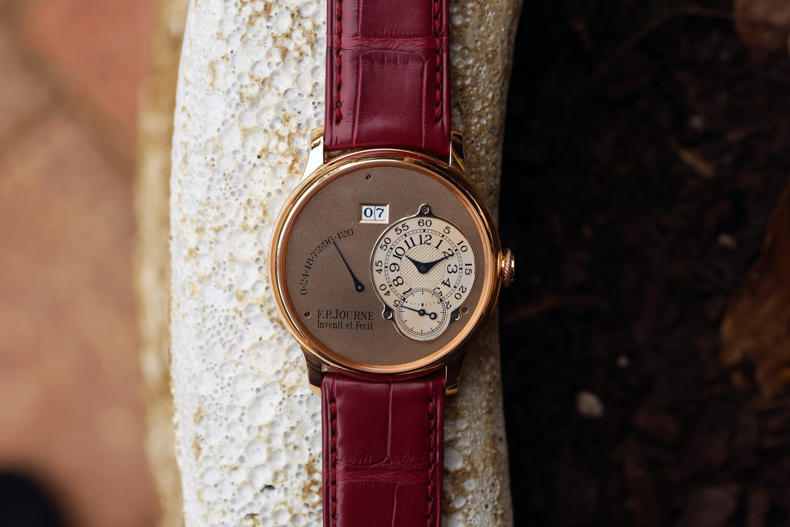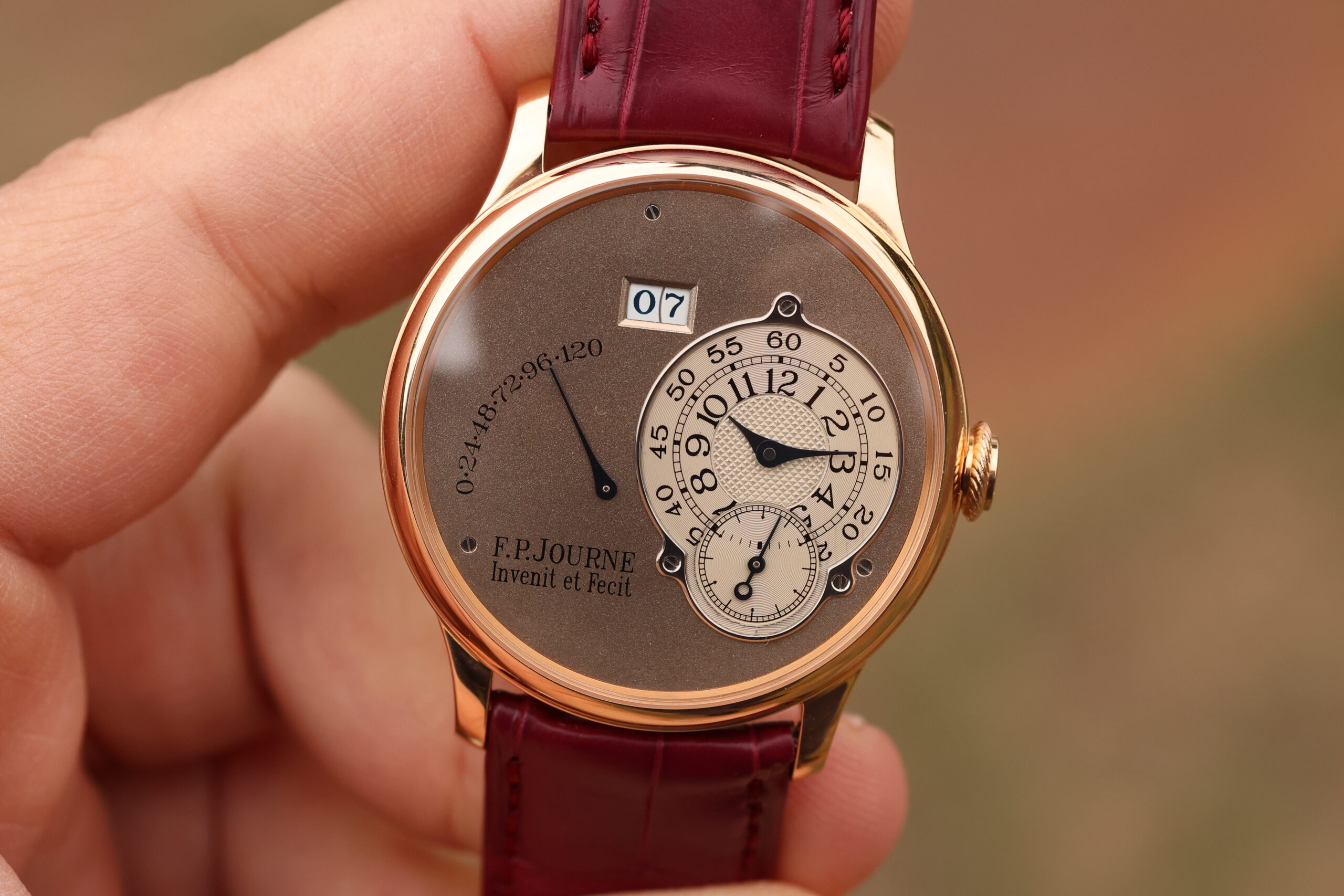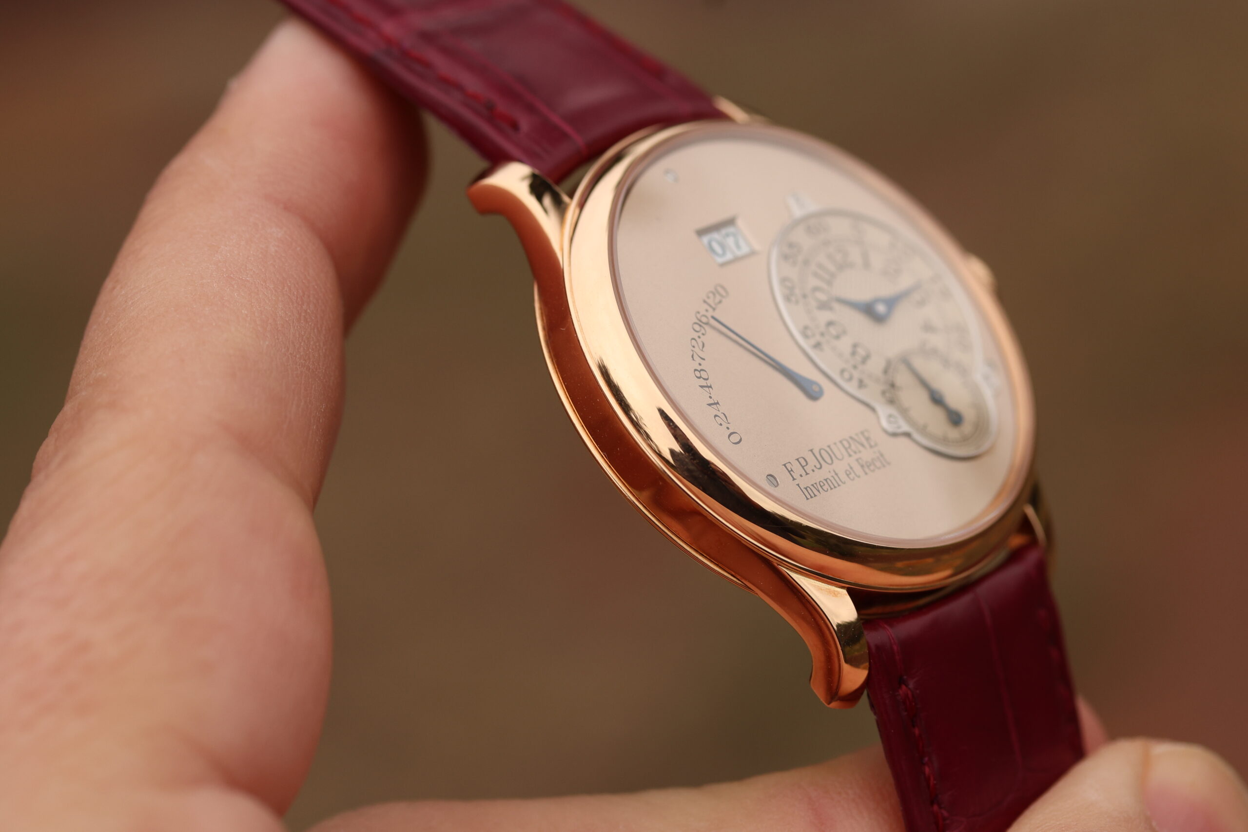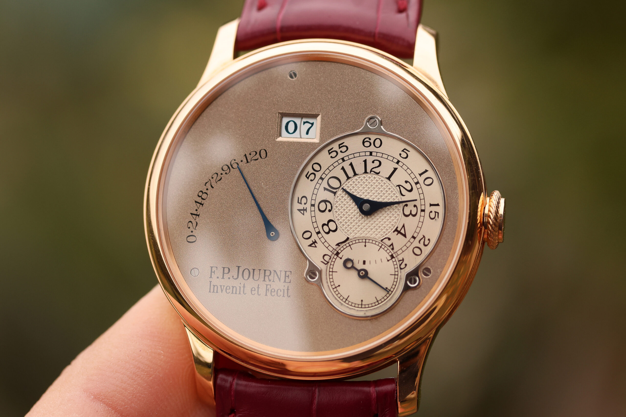 The watch is presented in the pictures on a FPJ burgundy strap in unworn condition. This strap will also be included.