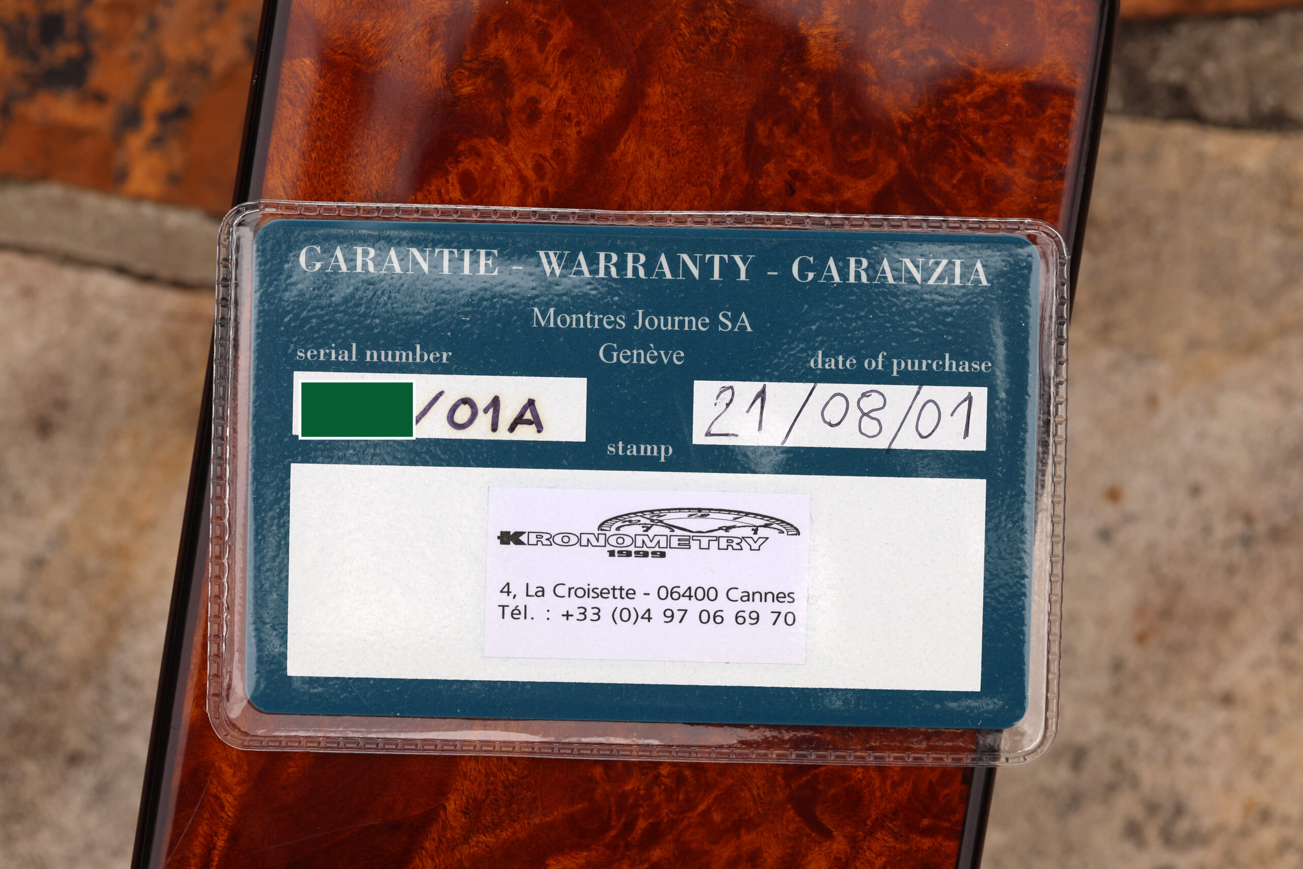 The watch is also accompanied by period correct FPJ wooden box and its original warranty card from French authorized agent at the time.