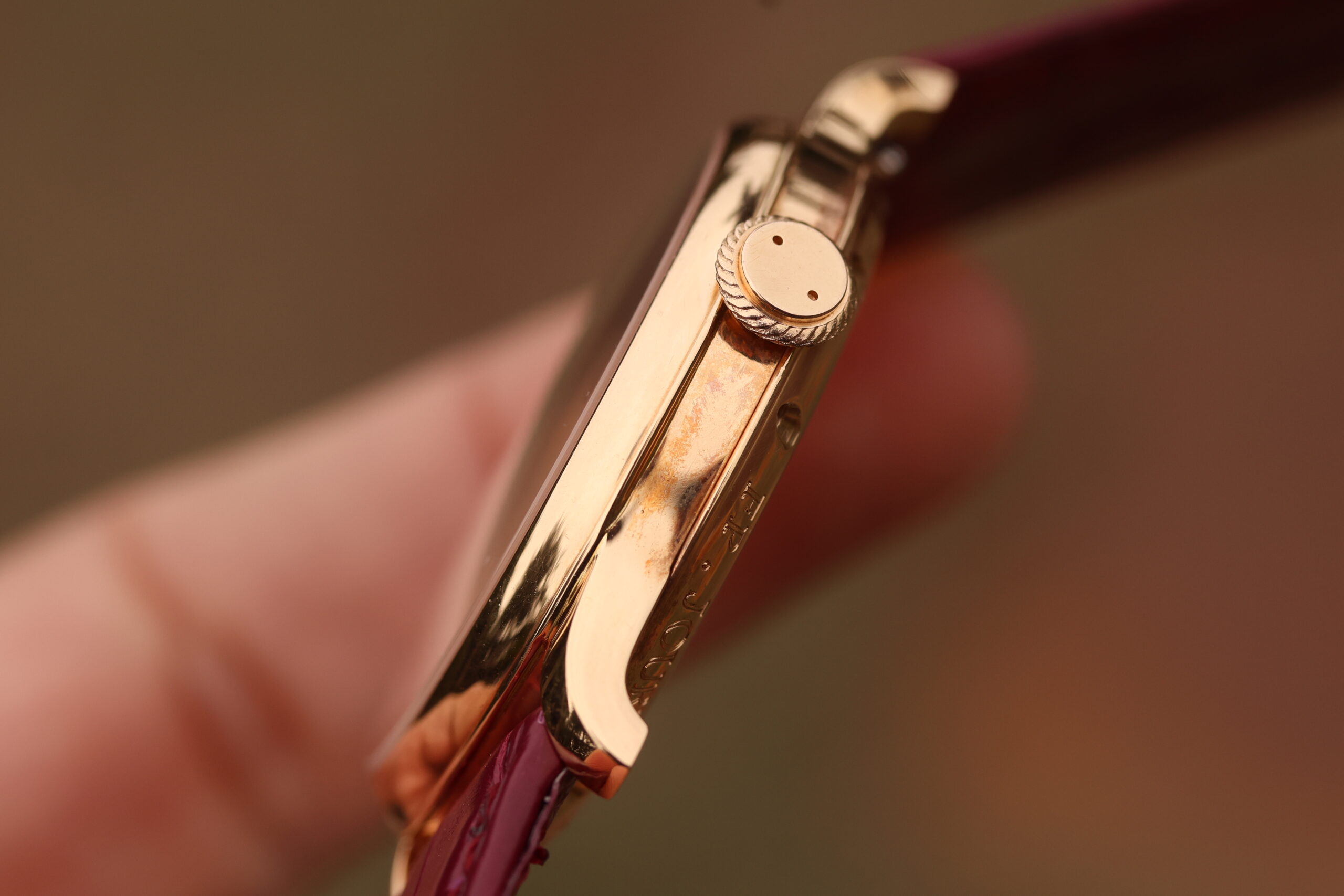 The case is spectacular and seemingly unpolished. The lugs are sharp and there is some gold patina developed on sides already.
