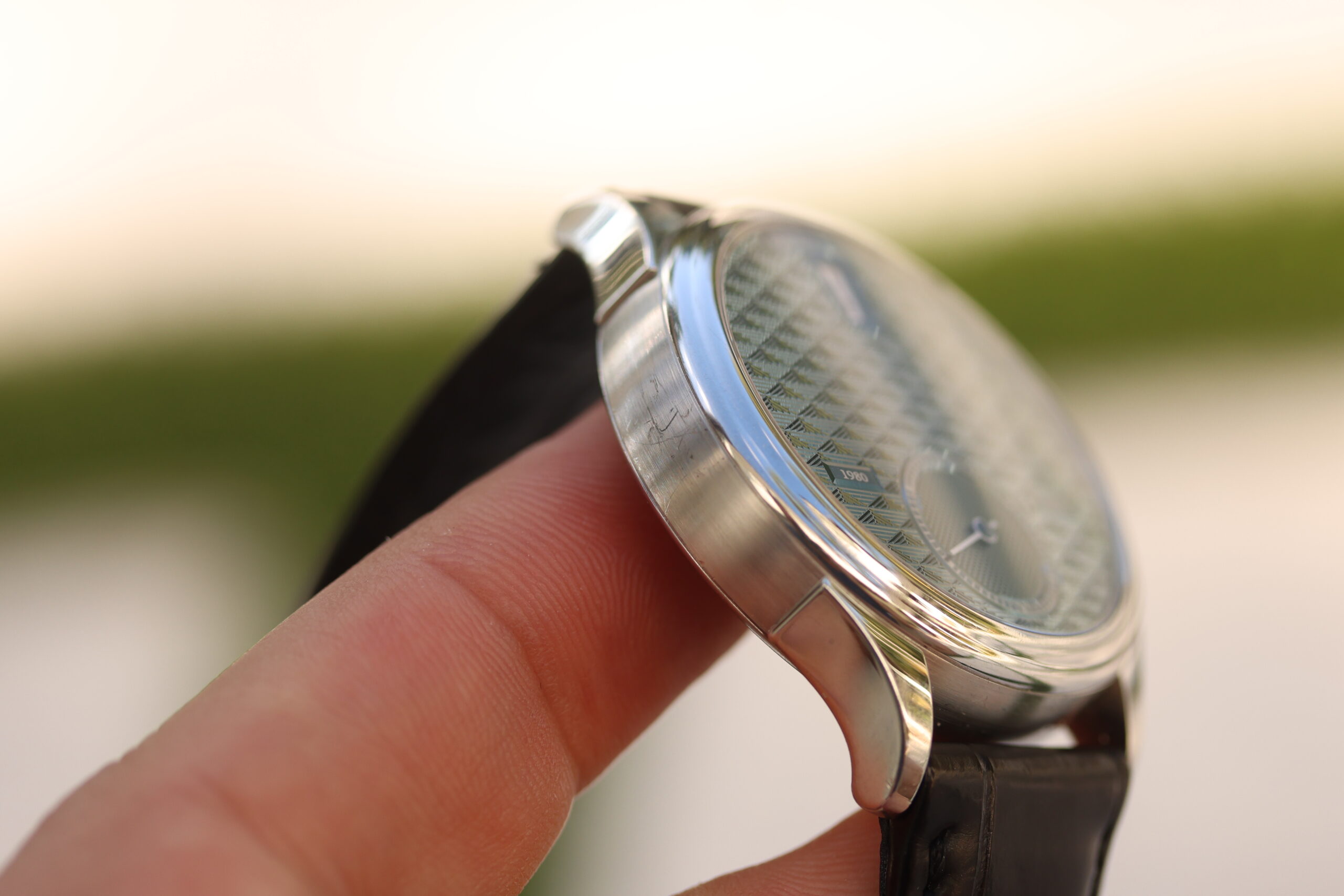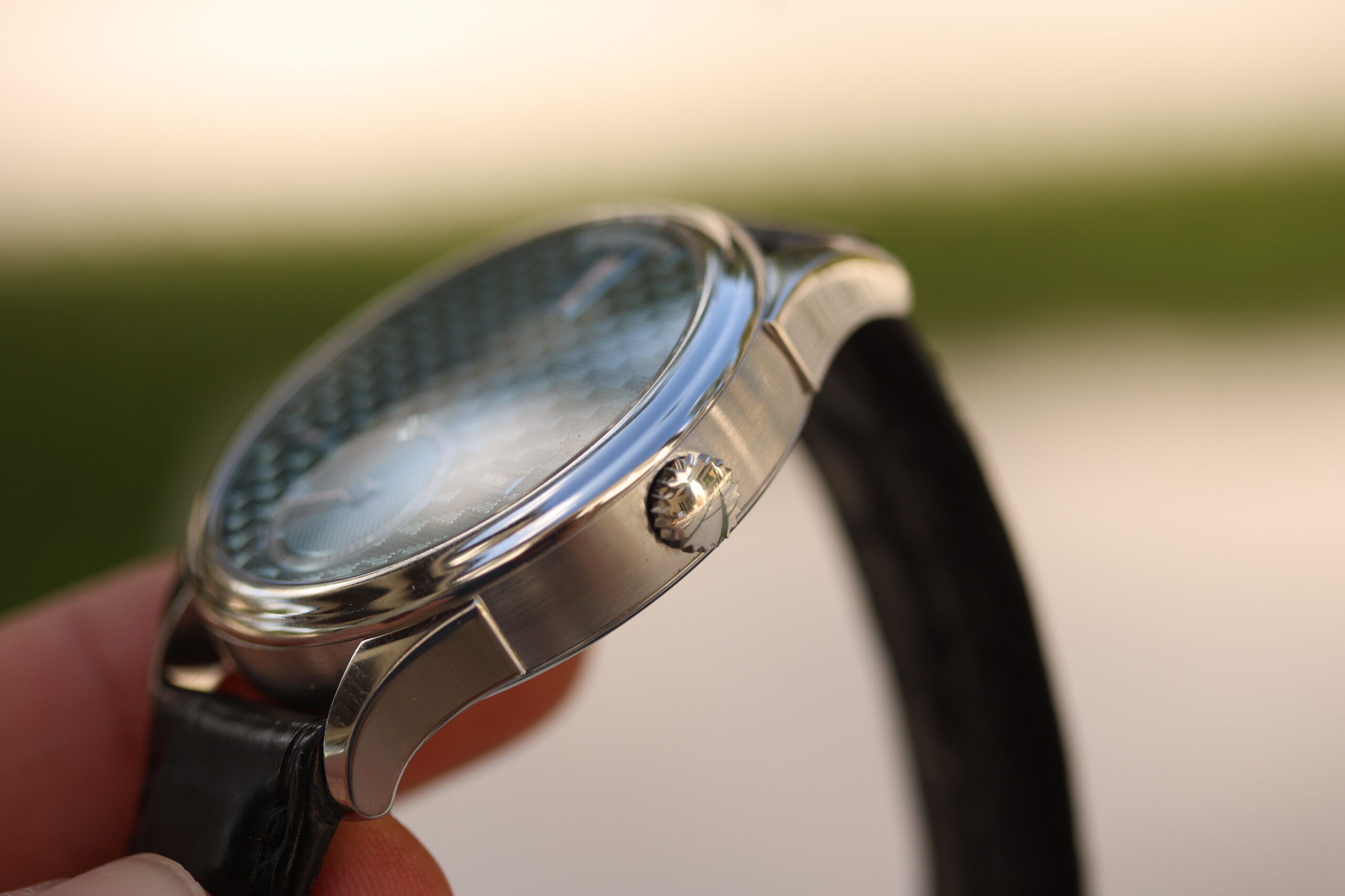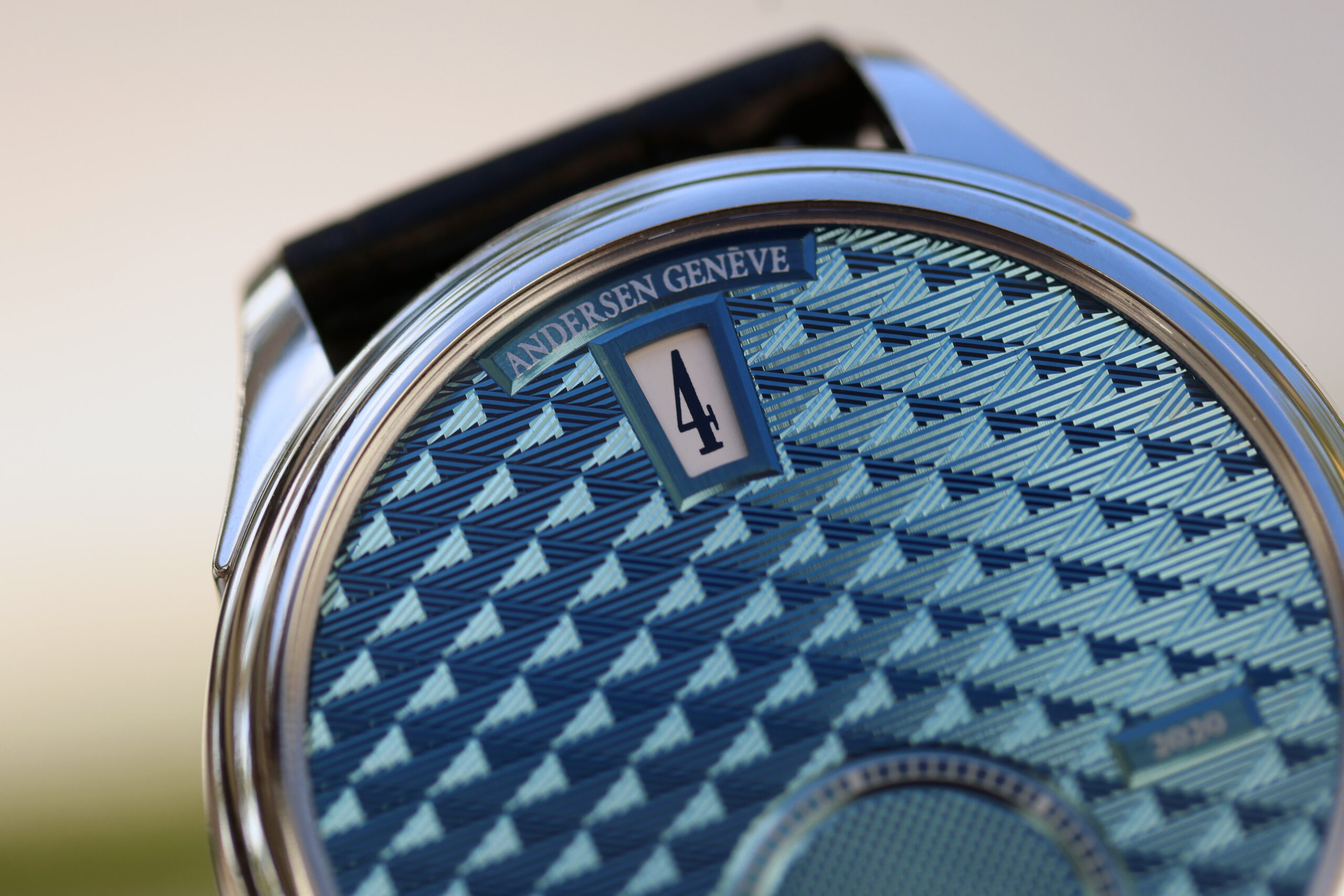 Through the sapphire caseback, the ultra-slim Frédéric Piguet 11.50 calibre is revealed, upgraded with ANDERSEN Genève’s in-house jumping hours module and a 60-hour power reserve via twin barrels. Hand-chamfered bridges display classic Geneva stripes, while the 18-carat yellow gold rotor features traditional grains d’orge guilloché and the signature ANDERSEN Genève “A” emblem. Surrounding the movement, a hand-engraved 21-carat BlueGold ring commemorates “40 years of independent timepiece creation”.