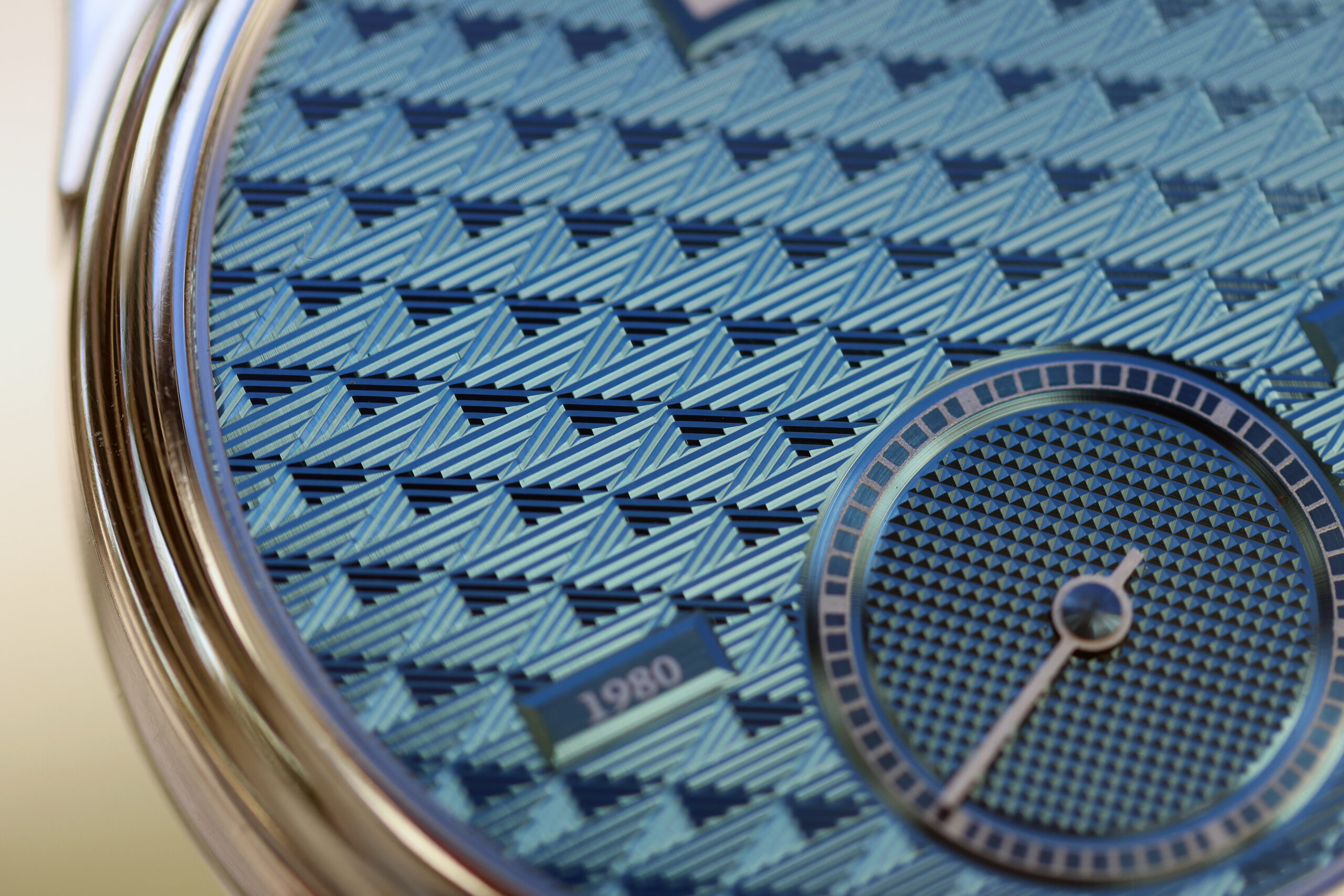 The dial is a 21-carat BlueGold, created through a rare artisanal process that fuses pure gold with iron at high temperatures. This traditional technique ensures every dial is unique, with shifting blue tones that dance in changing light. Into this vibrant canvas, master engravers carve the mesmerizing “magic diamond” guilloché, a complex geometric pattern achieved through three specialized engraving machines.