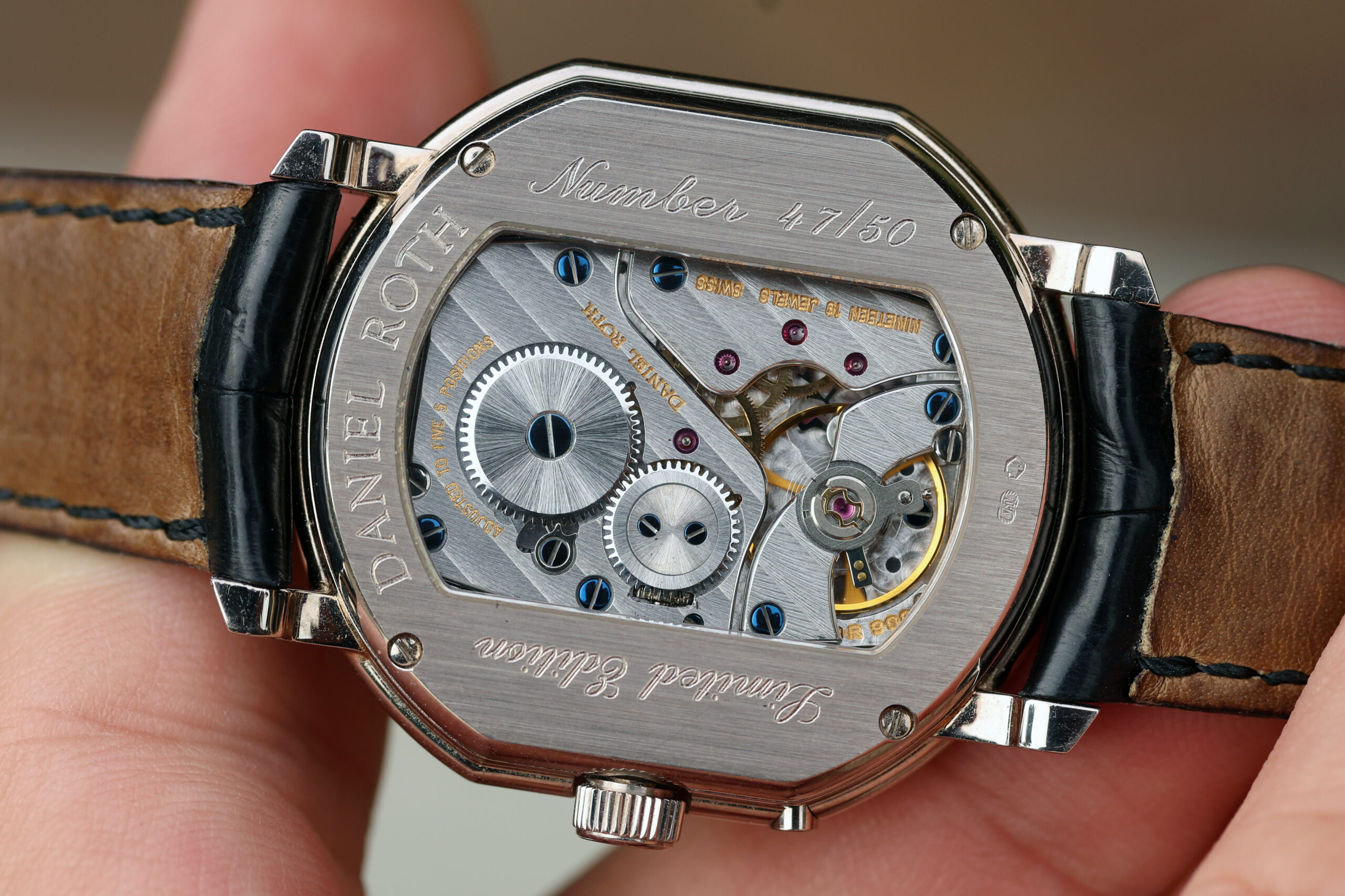 Launched in 2000 as a limited-edition collection of 50 pieces to celebrate the turn of the Millenium prior to the brand’s acquisition by Bulgari, this stunning piece is an emblematic example of Daniel Roth’s watchmaking style.