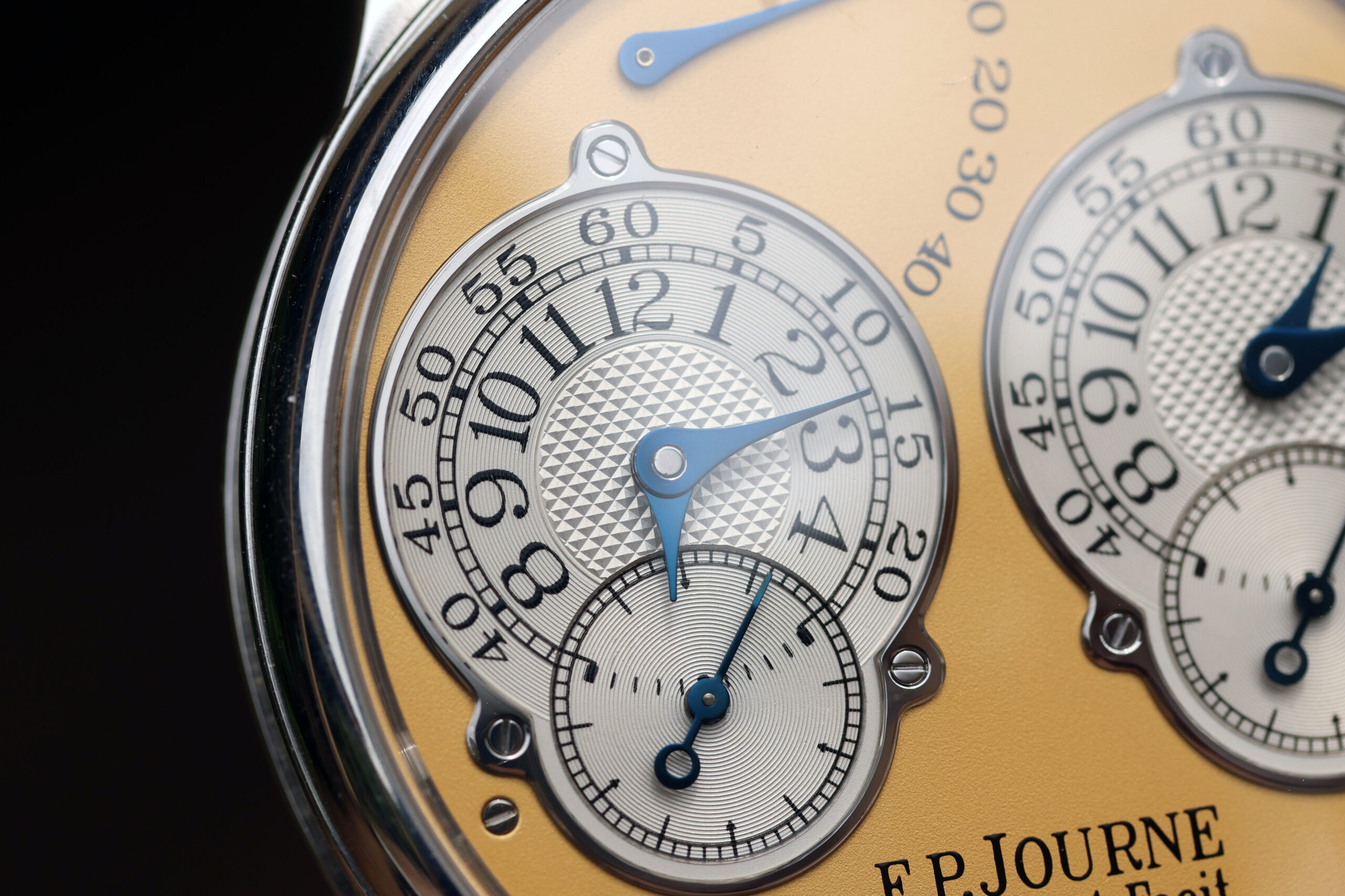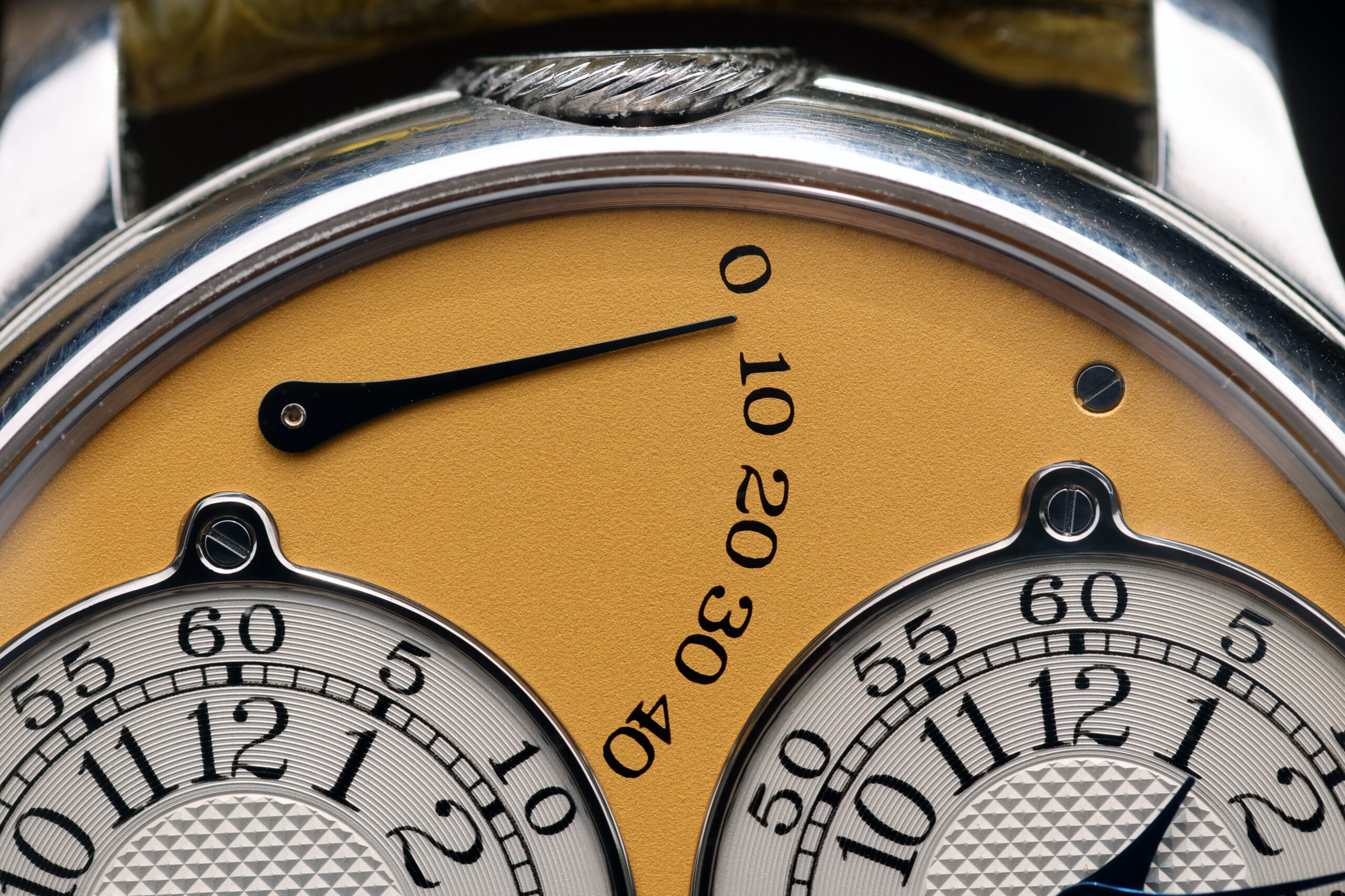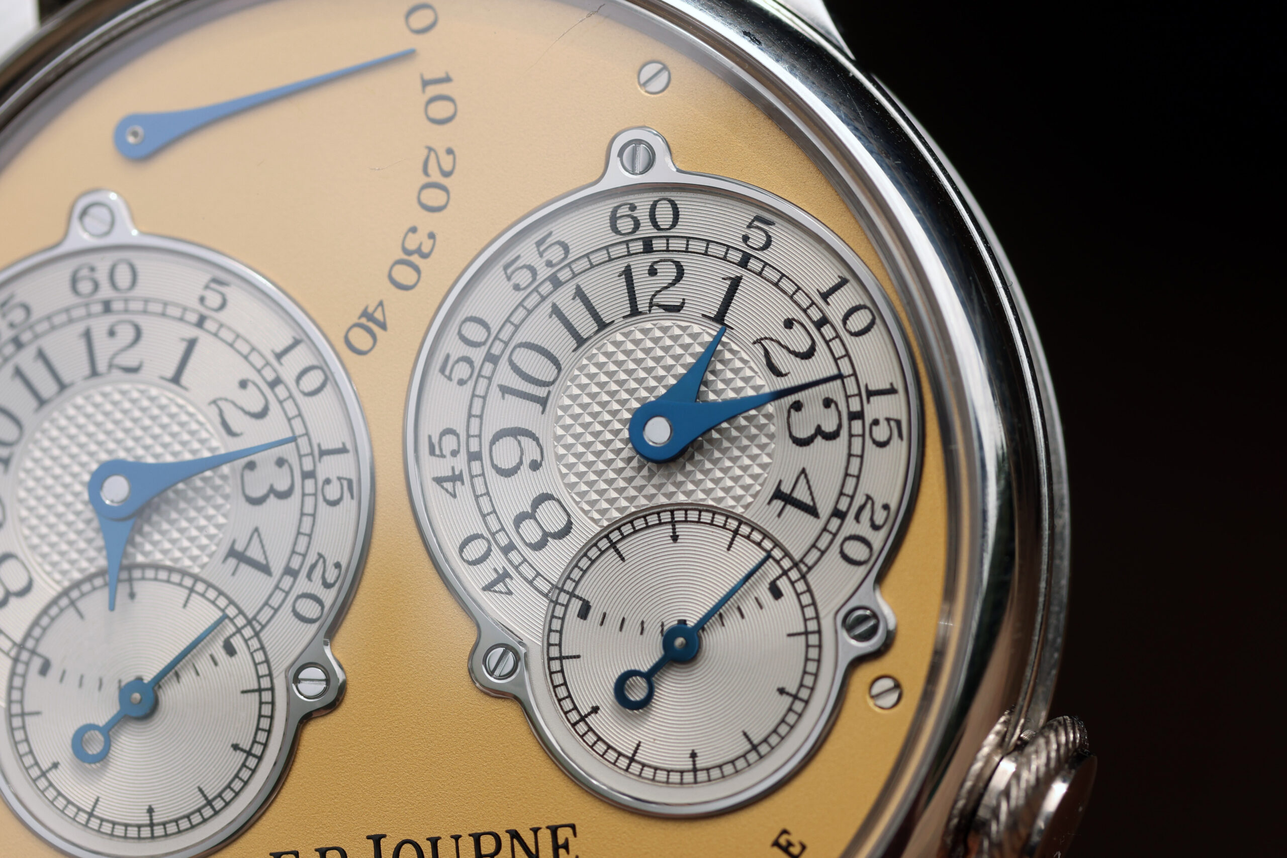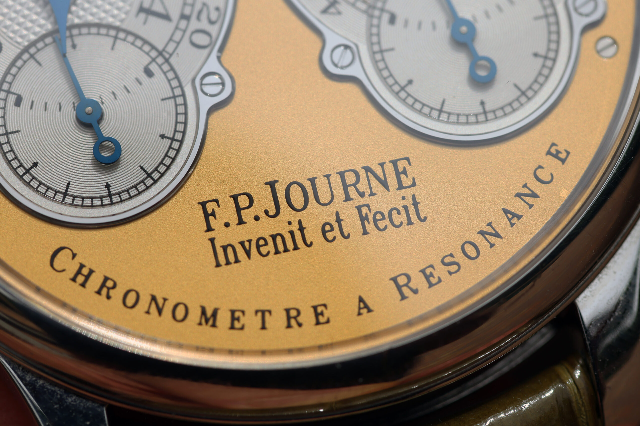 The platinum case with yellow gold dial spec on this watch is probably the most desirable. Yellow dials were only available on brass movement watches, along with white gold and pink gold variants. After the movements were switched over to rose gold ones, yellow dials were discontinued, making yellow dial Resonance some of the most rare and desirable.