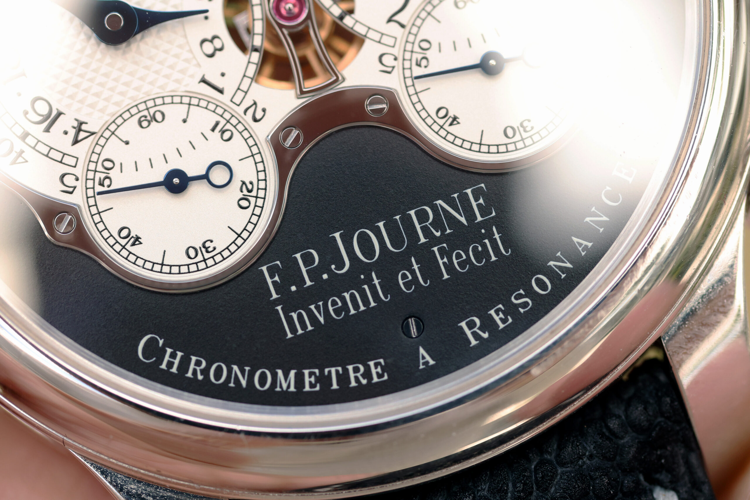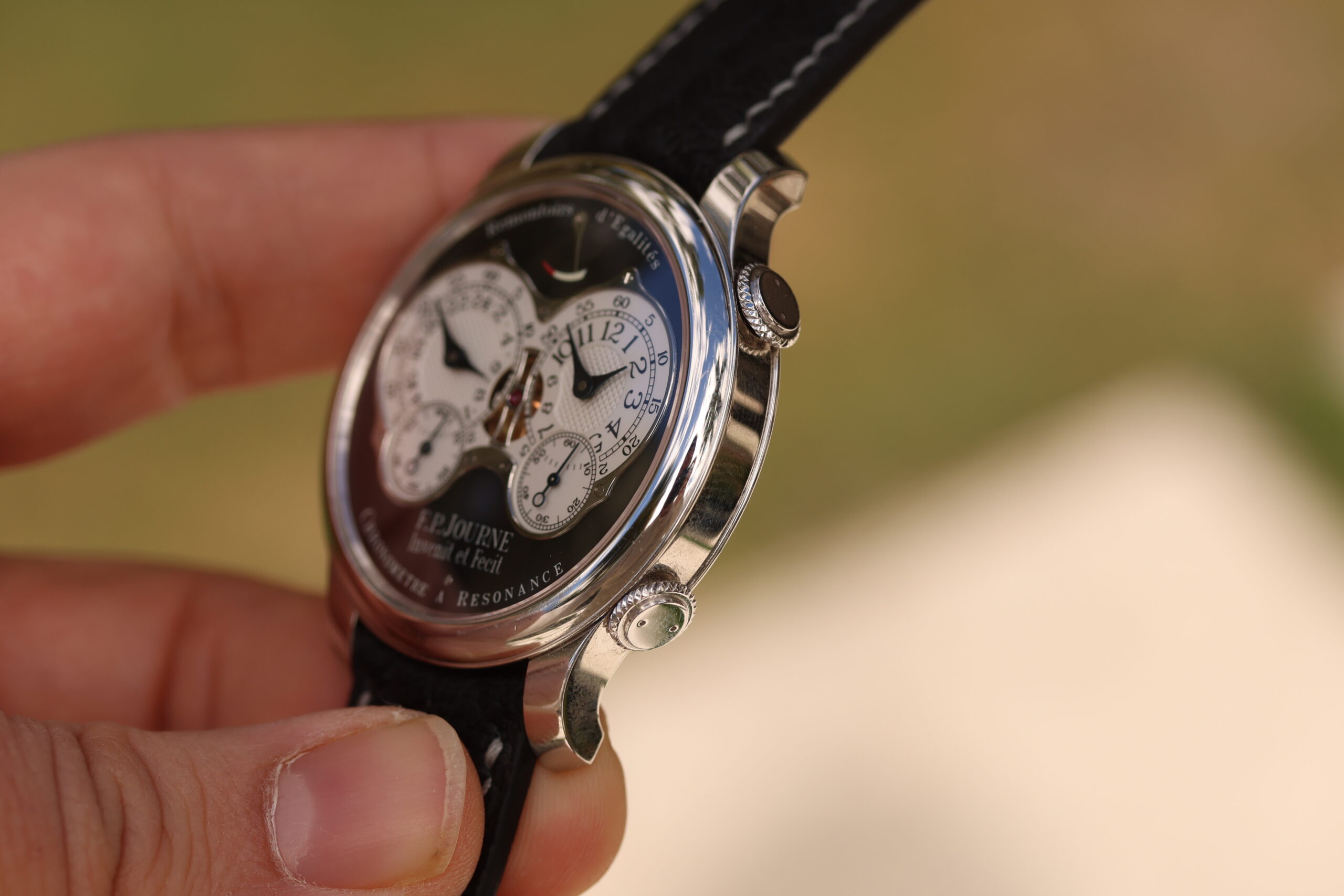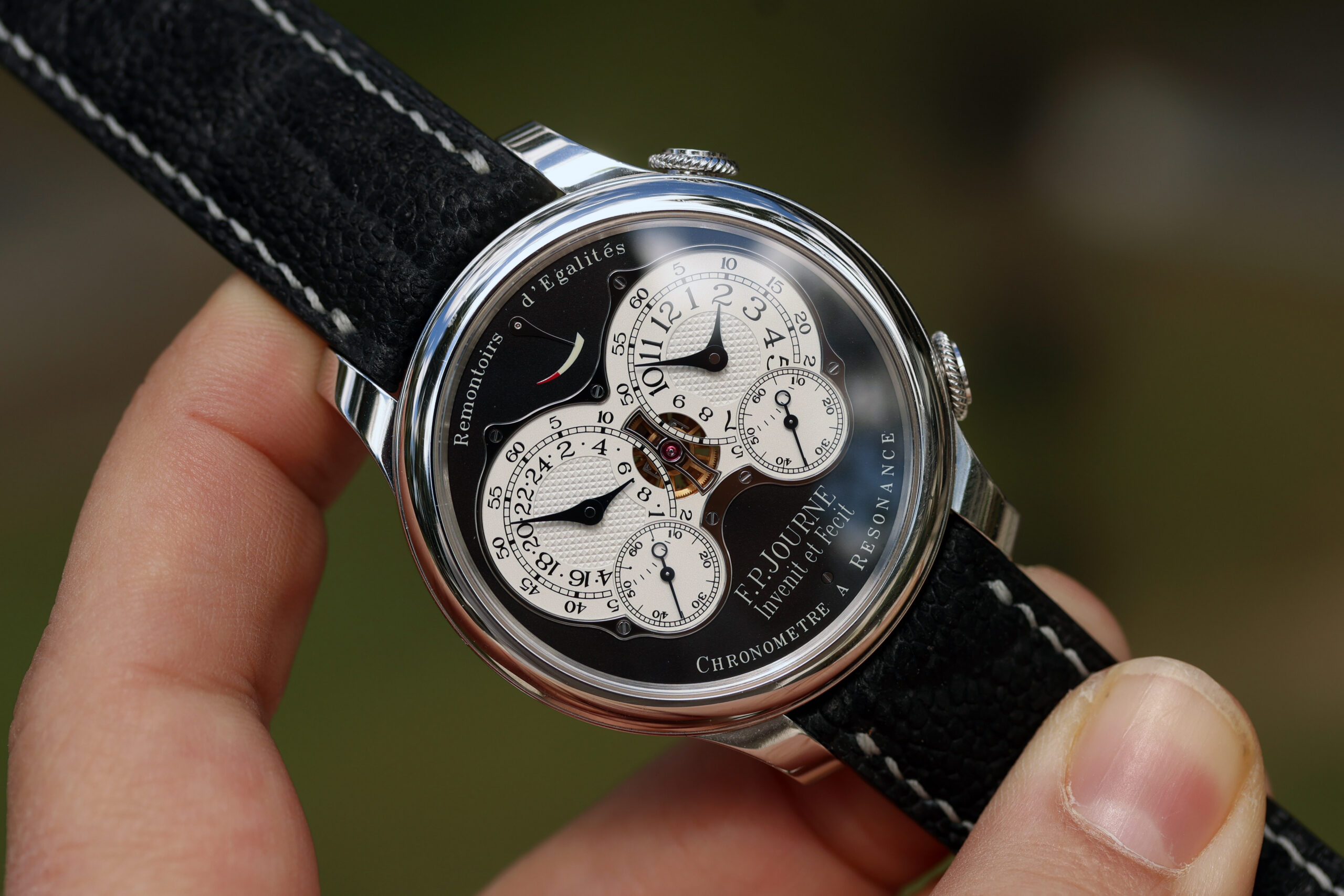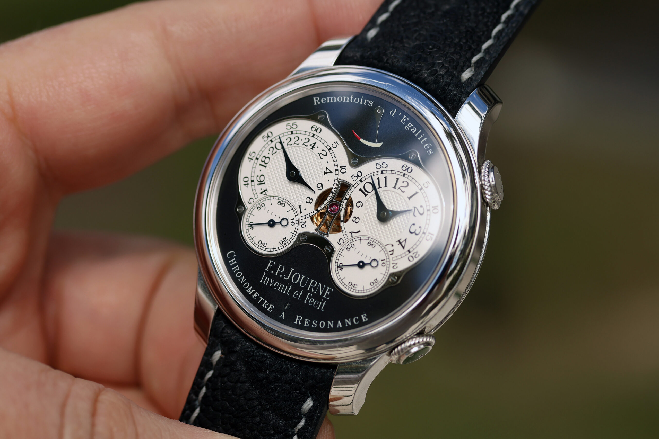 Up for grabs is an F.P. Journe Chronomètre à Résonance “RQ” (Résonance Quatre) Black Label in platinum.