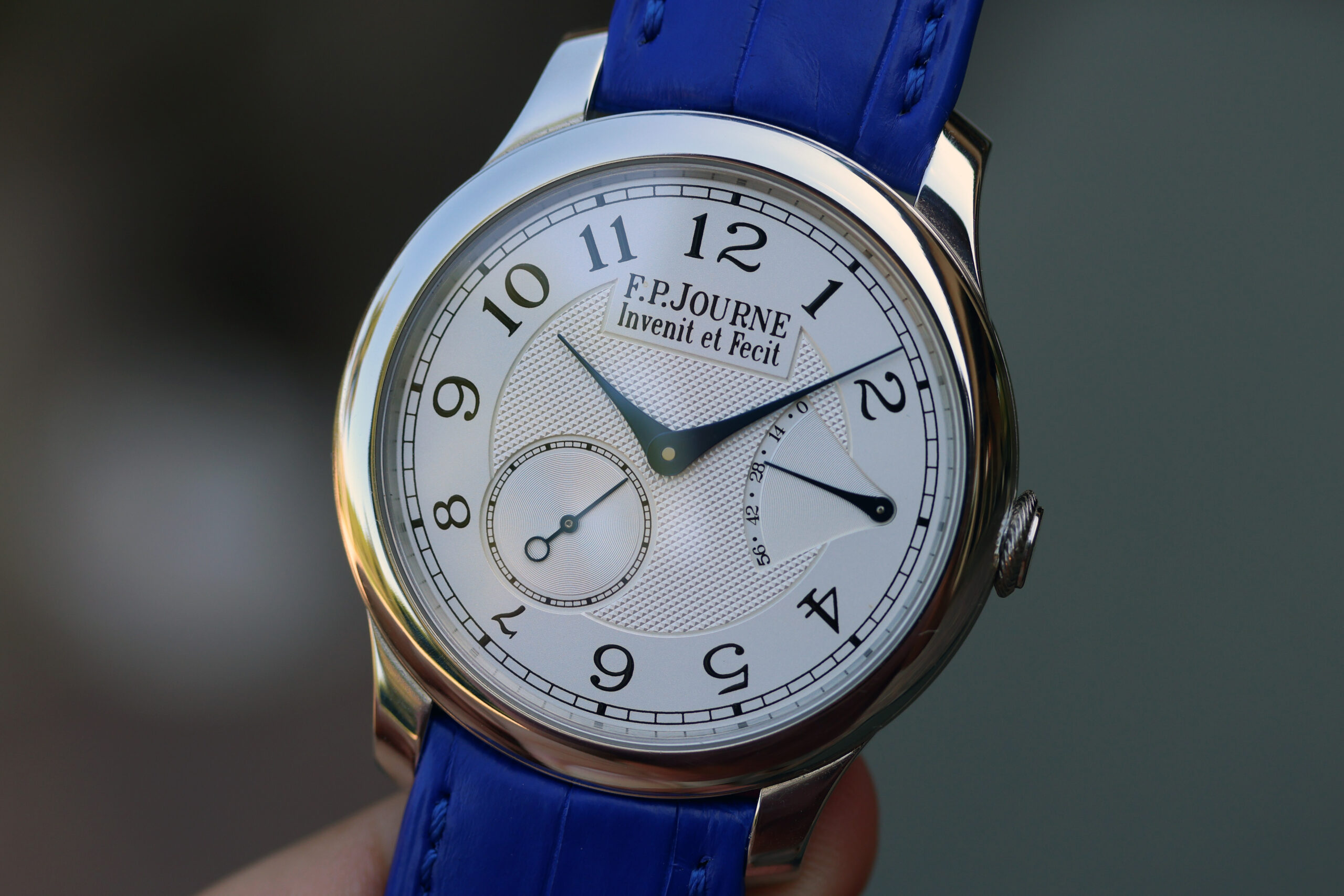 The watch comes on unused original FPJ blue strap with platinum buckle. If you prefer a different color, just ask and happy to swap.