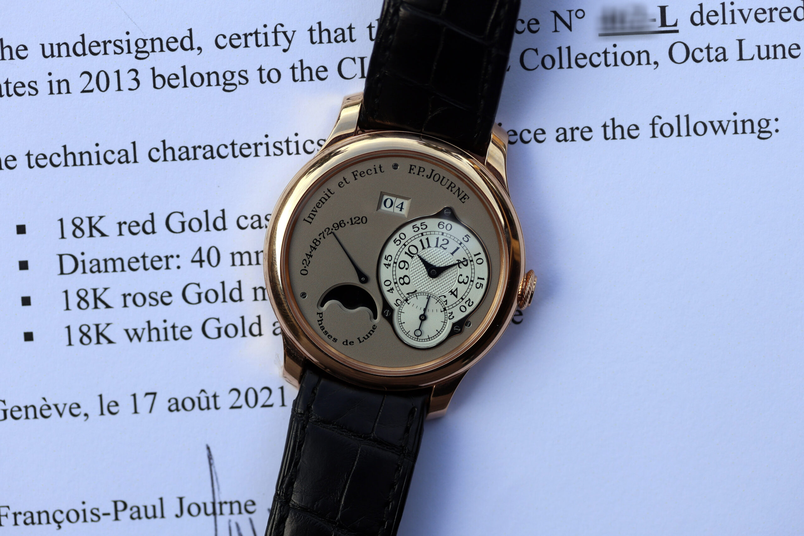 The watch comes complete with original FPJ boxes and Certificate of Authenticity indicating the delivery in 2013 to the US market and confirming the watch’s configuration.
