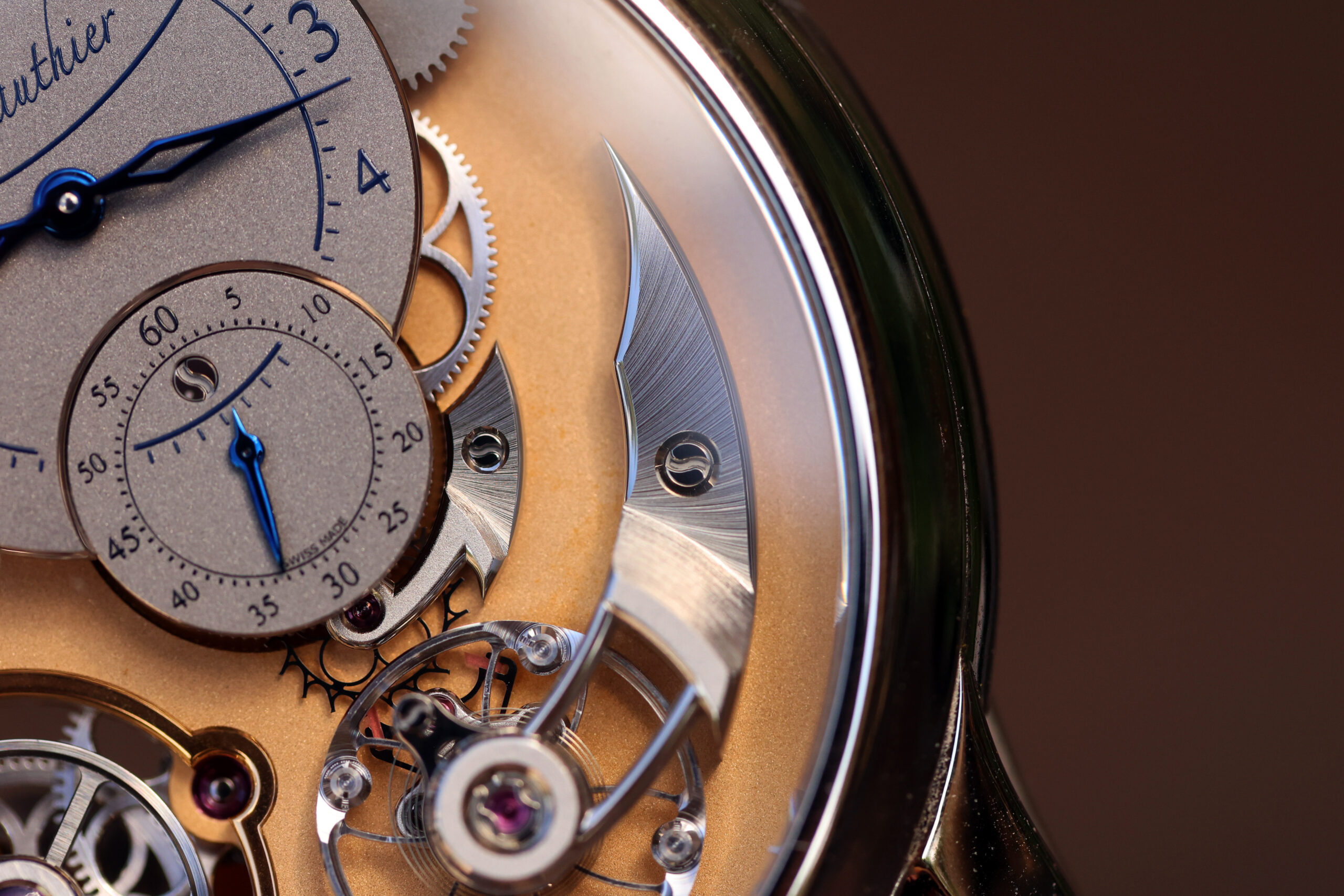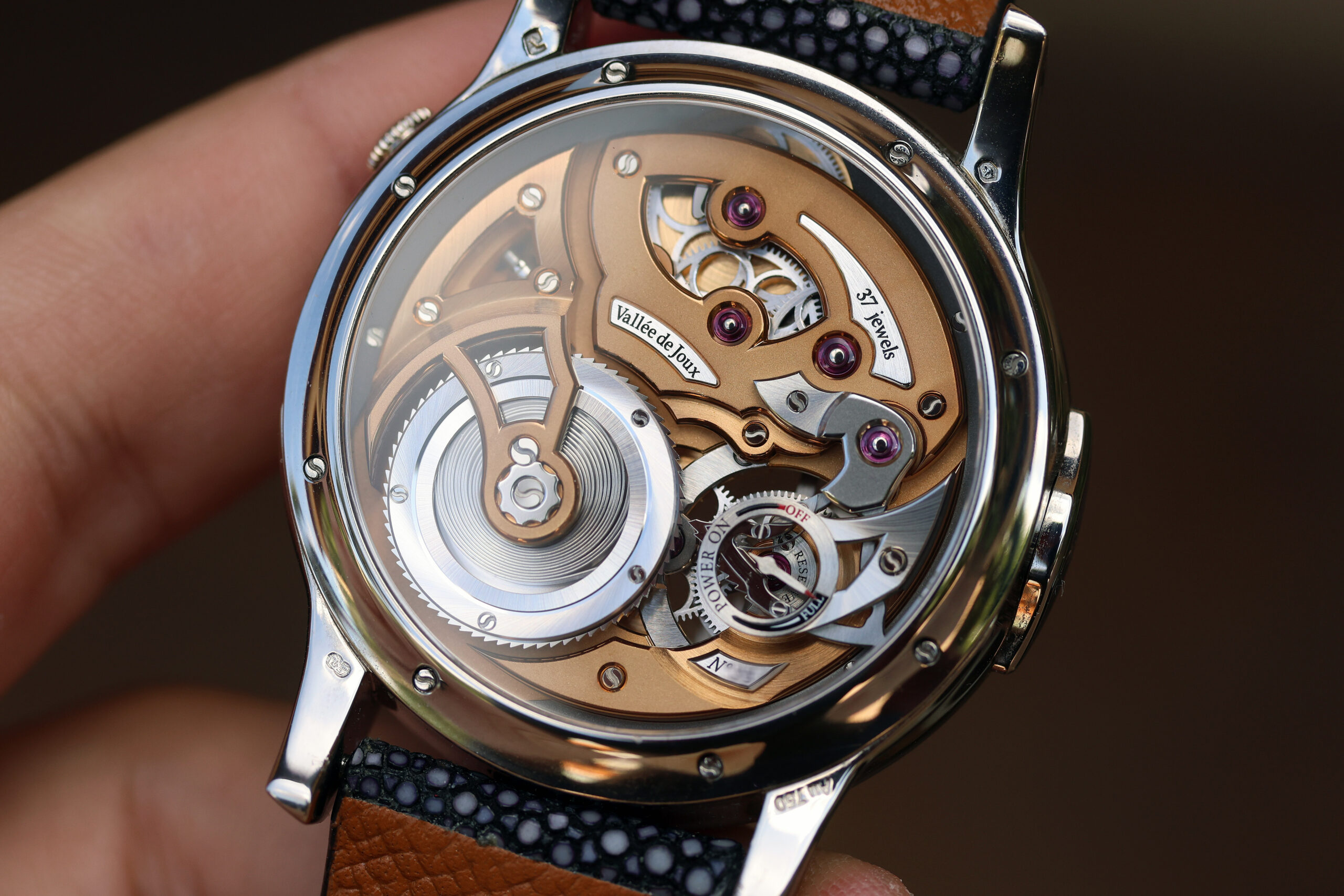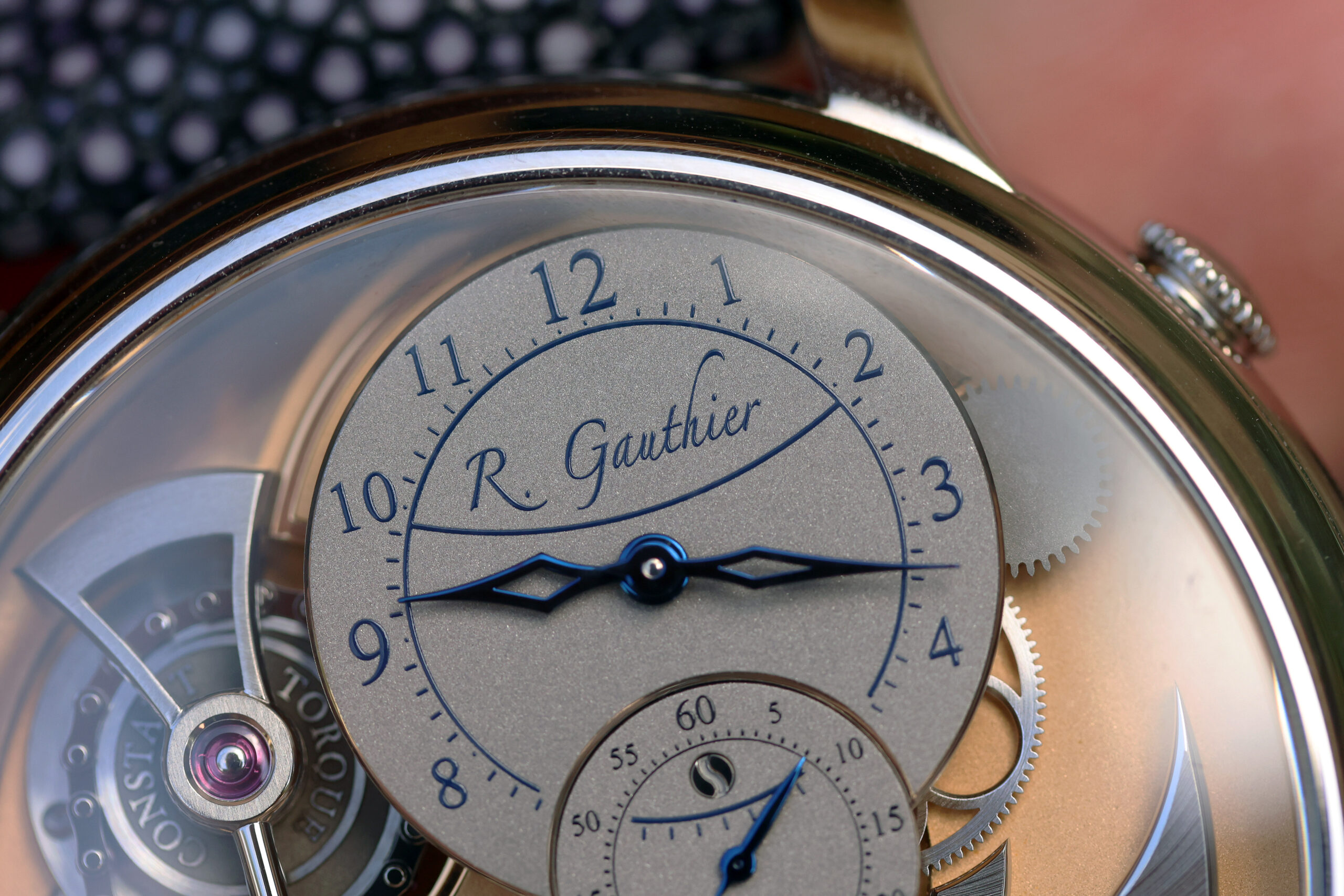 This watch was produced between 2015-2023 and they originally came with oven-fired Grand Feu white enamel dial, but the owner of this watch requested a special order dial in frosted gray with blue numbers for extra cost.