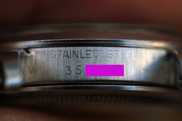 Excellent condition case with very thick and crisp lugs. Nicely defined and sharp edges. No corrosion or pitting. Serial and reference numbers are very crisp and full intact.