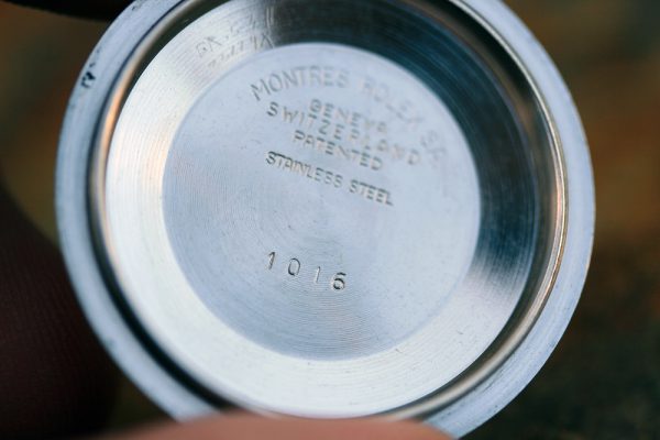 Caseback is excellent stamped 1016. Only a single service mark is visible from 2011, reinforcing the evidence that the watch has not been overpolished.
