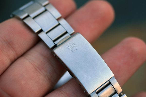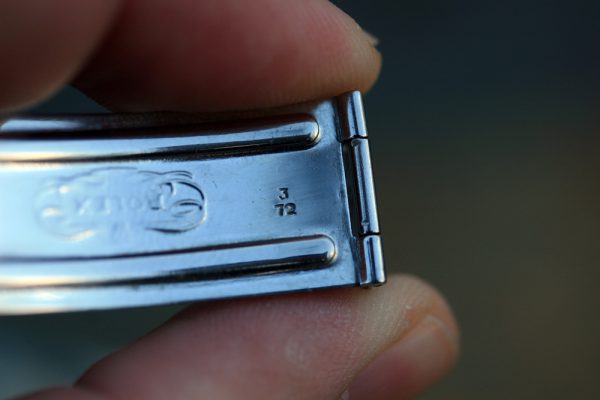 Bracelet is excellent Rolex 7836 folded link with 12 links, 358 ends, and 3/72 date stamp on clasp. Very minimal stretch for a folded link bracelet.