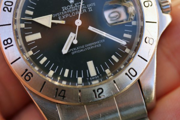 Dial is in excellent condition, MK2 with eggshell aged tritium. No chips, no scratches, no corrosion or other damage on dial. Original hands with matching patina and “albino” faded GMT hand. Original silver date disk with 6’s and 9’s.