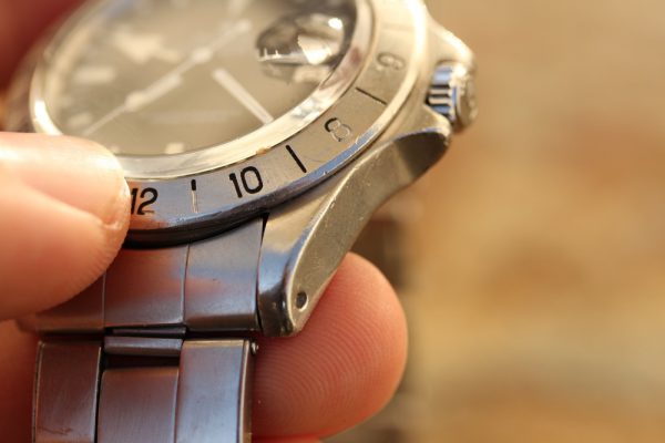 Bezel is in excellent vintage condition. Some of the color is missing, but the bezel is very sharp, clear double step and original finish!