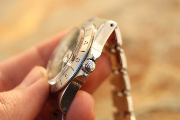 Watch comes on Rolex USA CI rivet bracelet stamped ’76. The bracelet has 12 links (missing 1) and shows stretch from use.
