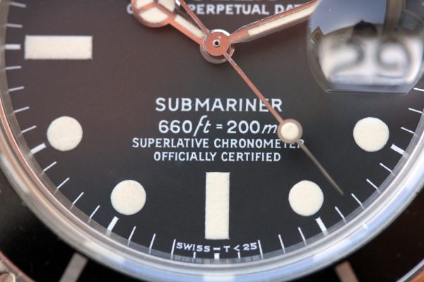 Dial is original, tritium, MK3 variation amongst white dials with closed 6’s in depth. Tritium is fully intact and has a nice warm cream patina in person. Hands are tritium and matching. Original date disk with open 6’s and 9’s.