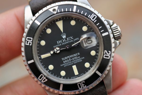 Dial is in excellent condition early service tritium. The dial has already developed very attractive patina and does not glow in dark. Hands are tritium and probably replaced during service also. They do not glow in dark. Date disk is correct, silver with open 6’s and 9’s.