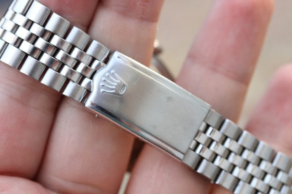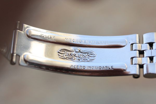 Bracelet is a Rolex Joske’s Hecho En Mexico oval jubilee in excellent condition. Fits about an 8″ wrist.