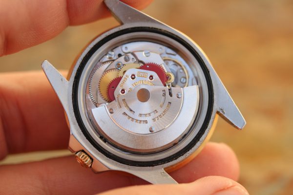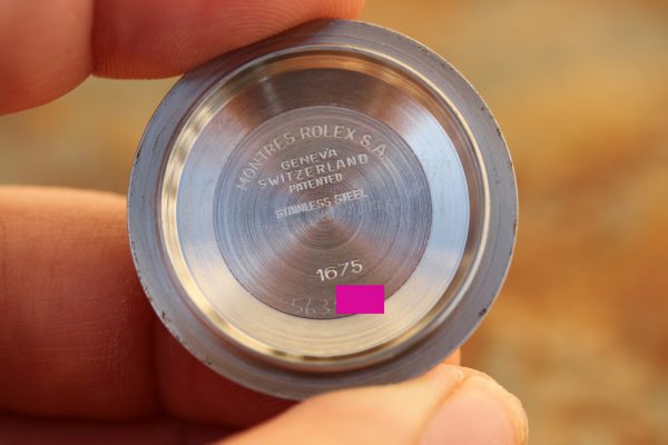 Caseback is original, stamped 1675. Someone has inscribed the serial number of the watch inside. No corrosion on caseback or case around gasket.
