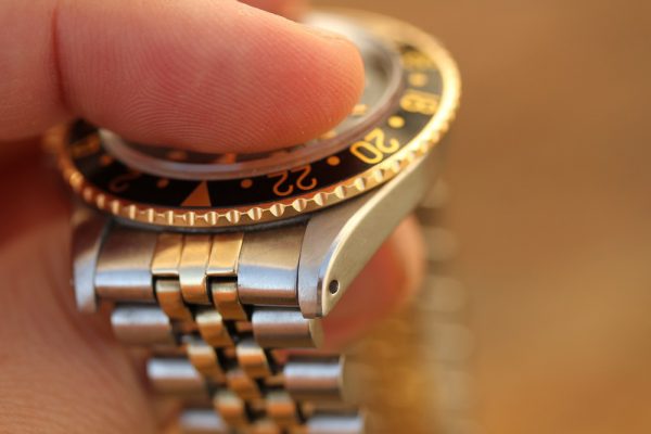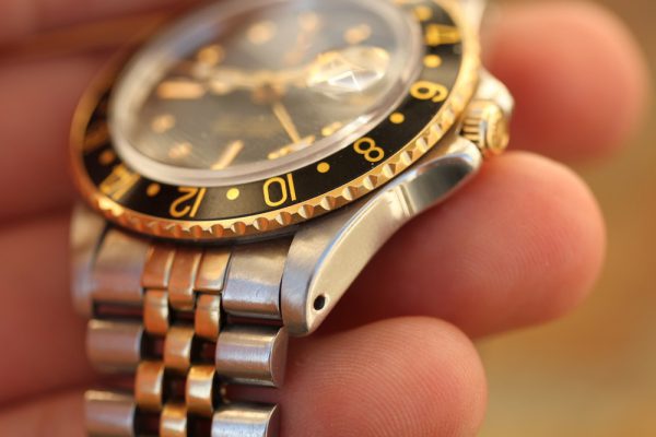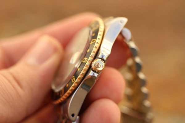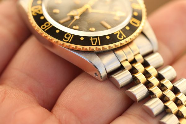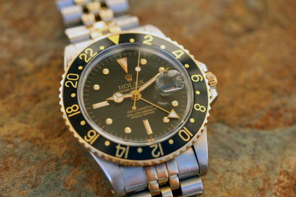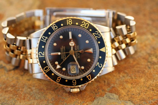 Up for grabs is a Rolex GMT-Master in steel and 14kt yellow gold
