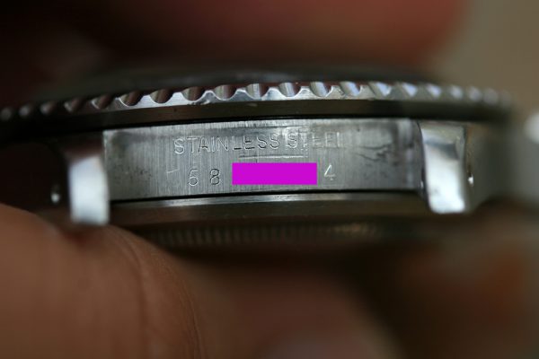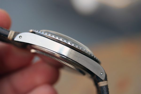 Fantastic vintage condition case with very strong and even lugs and crown guards. Original bevels are clearly visible. No corrosion or pitting. Serial and reference numbers are crisp and fully intact.