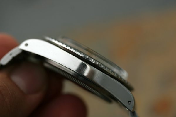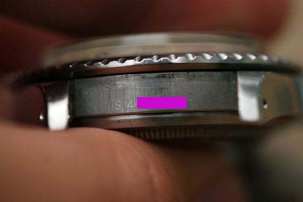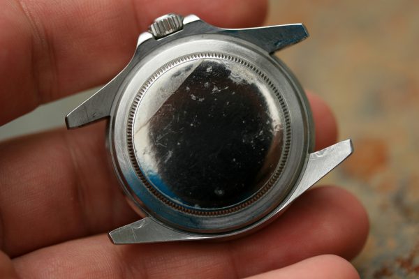 Excellent vintage condition case with very thick beveled lugs and crown guards. No corrosion or pitting anywhere. Serial and reference numbers are crisp and fully intact.