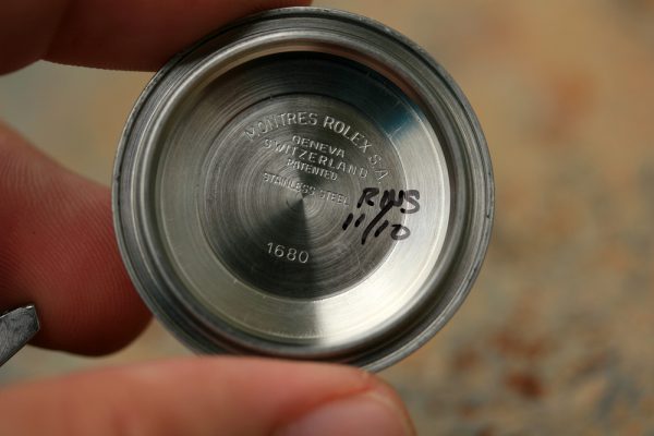Caseback is stamped 1680, has clear sticker still on outside evidently from when it went it for service.