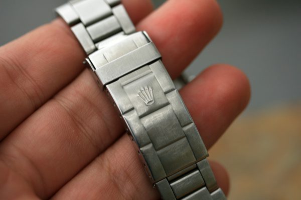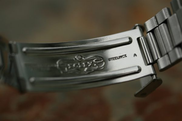 Bracelet is Rolex folded link 9315 with 9 links, Patented diver’s extension and A date code on clasp.
