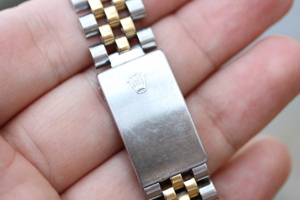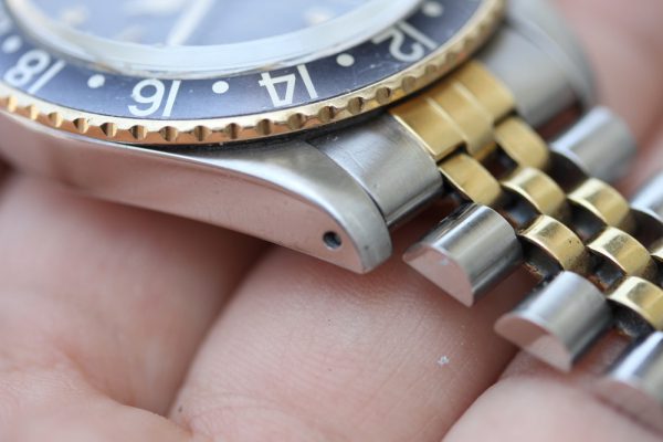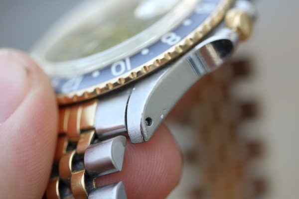 Bracelet is Rolex 62523H in steel and 18kt yellow gold. Fair condition with all links, G9 date stamp on clasp, correct for GMT-Master “50” stamp on last link and 450 ends.