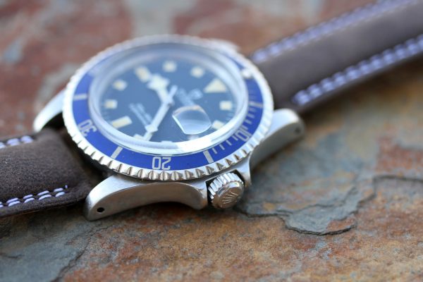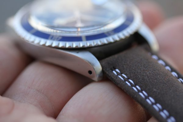 Comes on an unworn leather strap with white stitching. No box or papers.