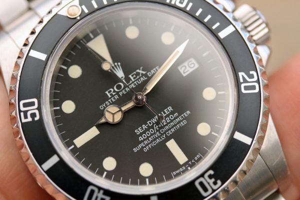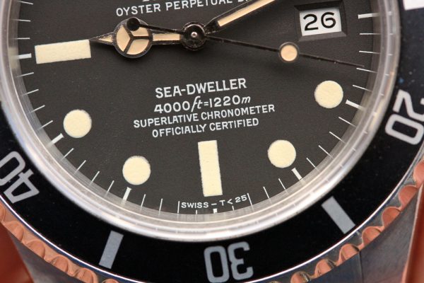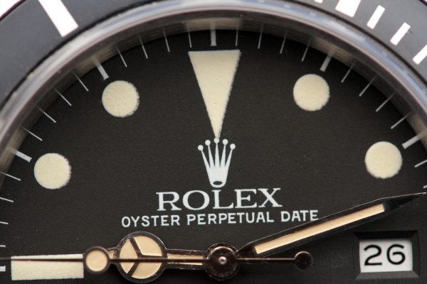 Dial is original, matte tritium in excellent condition. No drag marks, spotting, or other damage. Original date disk with open 6’s and 9’s. Hands appear original, relumed with non-luminous material.