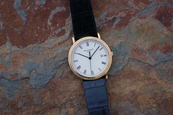 SOLD 1989 Patek Philippe Calatrava 3944 Date, Hobnail Bezel, Quartz, 18kt Yellow Gold