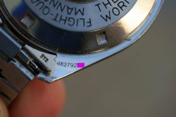 Caseback is excellent with crisp engraving and full colored in words. Stamped ST145022 inside as should be.