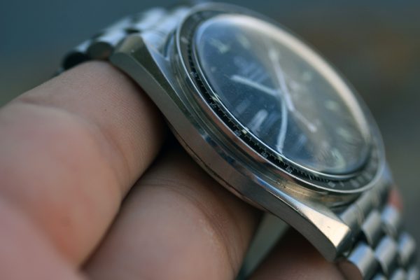 Excellent condition watch with no major dings, dents, or deep scratches. Serial number is intact on lug. Crisp and defined lugs.
