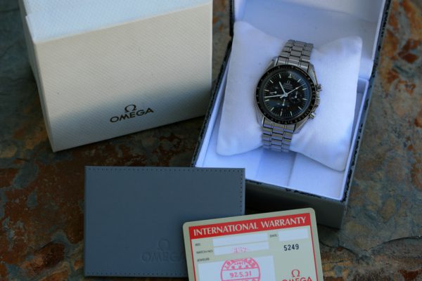 Comes with Omega boxes, Omega card holder, Omega warranty card with AD stamp, but was never filled out.