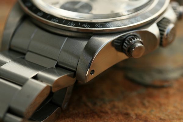 Excellent condition case with very thick and even lugs. Original bevels. Thick and even crown guards. No corrosion, no pitting. Serial and reference numbers are very crisp and fully intact.
