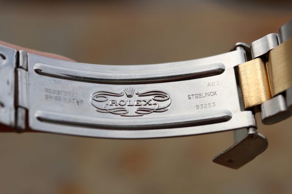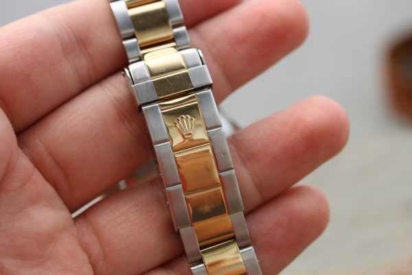 Bracelet is a Rolex 93253 with 11.5 links, SELs, light stretch from use, crisp coronet on clasp, AB date code, diver’s extension.