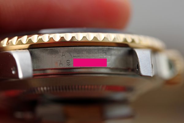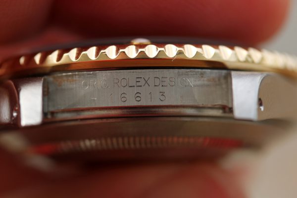 Excellent condition case with thick and even lugs. The original bevels are still evident. No dents, dings, or deep scratches. Serial and reference numbers are fully intact and visible clearly.